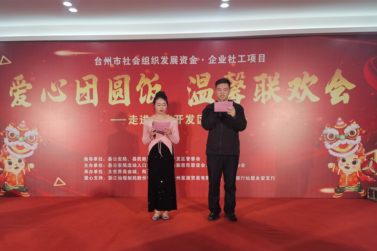 1月24日,由仙居縣新居民聯(lián)誼會(huì)舉辦的“愛(ài)心團(tuán)圓飯,溫馨聯(lián)歡會(huì)”在仙琚制藥食堂三樓大廳舉行,公司黨委副書(shū)記、工會(huì)主席吳天飛參加了團(tuán)圓聯(lián)歡會(huì)。